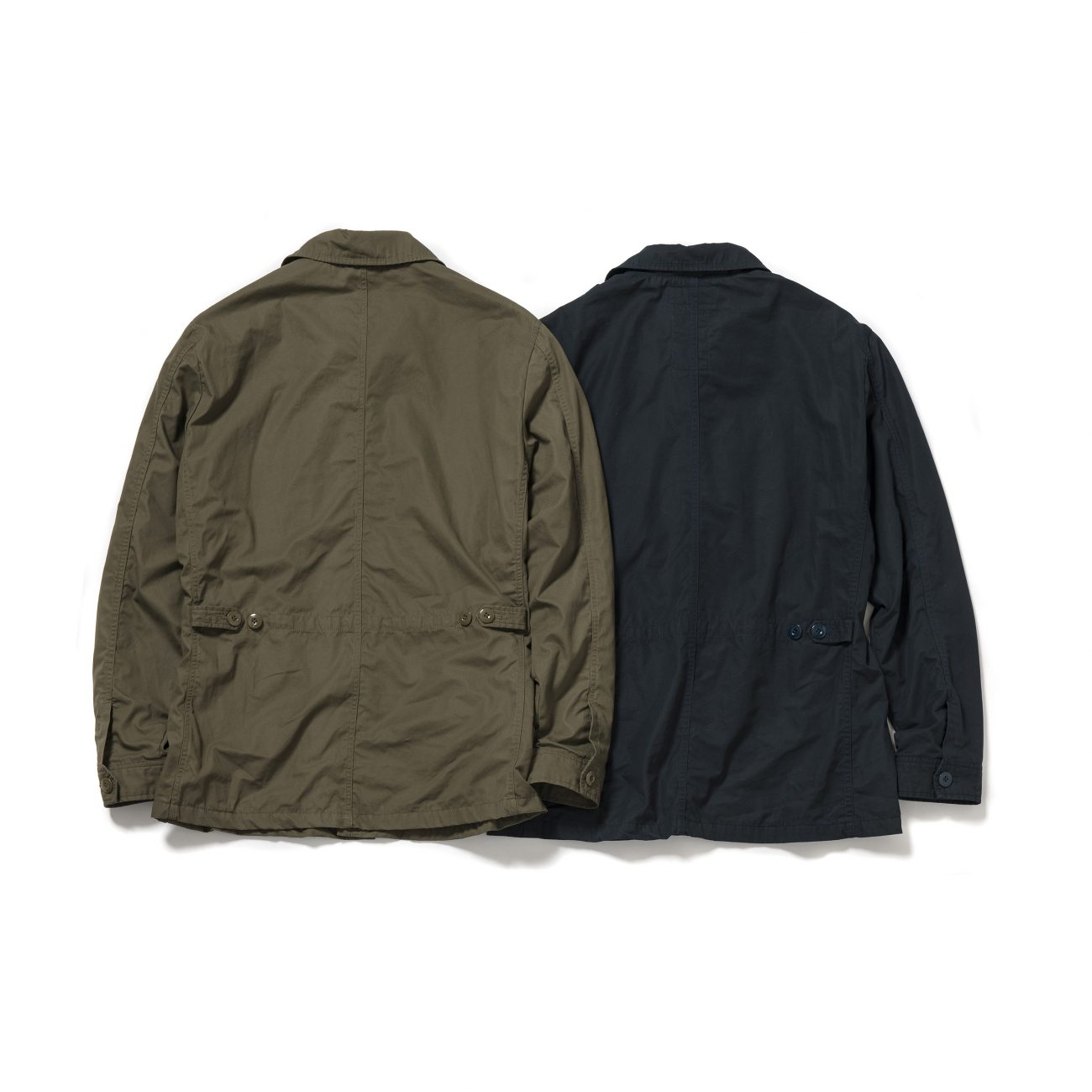 撥水素材のNYLON 100%のオックス生地を使用した襟なしのJKT。