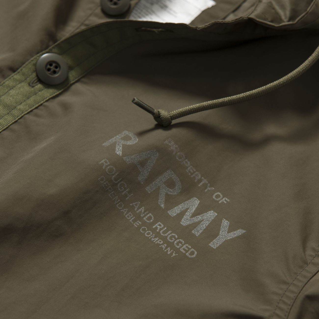 配色されたナイロンテープやブラックリフレクタープリントによるギミックがアクセントになっているアノラックジャケット。 -