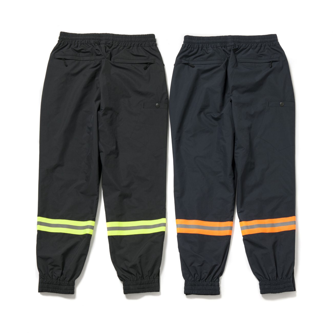 足元に配置されたリフレクターテープが90年代のスポーツテイストを高め夜間の走行時にも機能を発揮するパンツ。 -