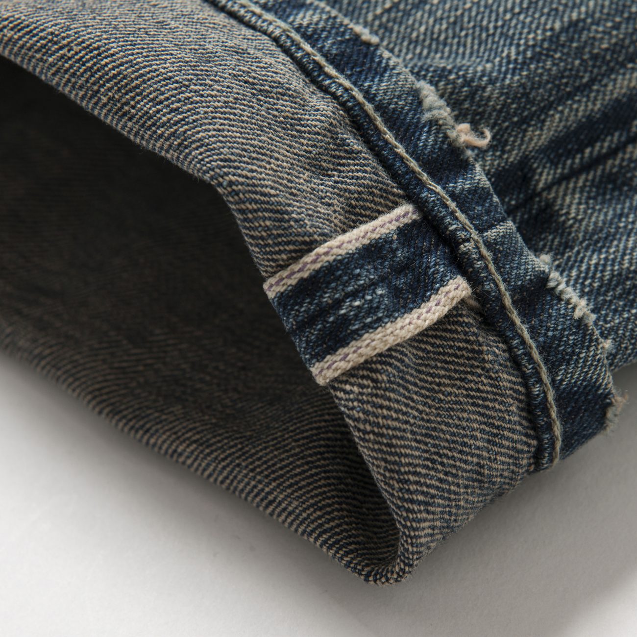 デットストックデニムの風合いに編み立てた15ozの上質なオリジナルセルビッチデニム生地を使用。