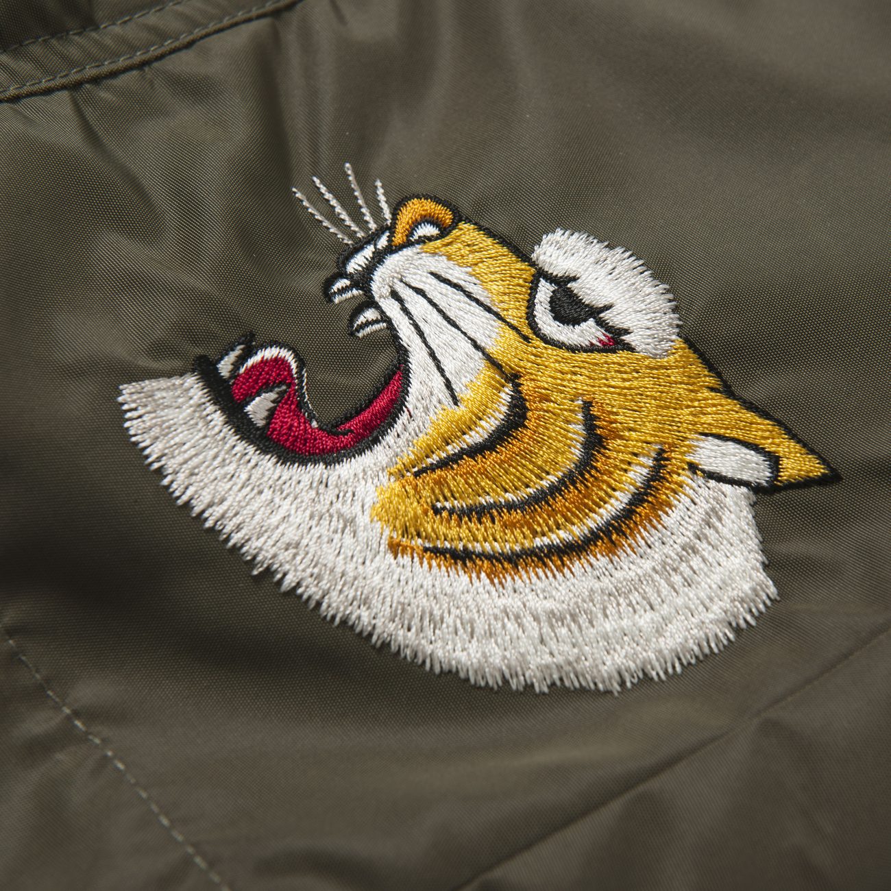 サイドに配置された大きめのポケットと、SKETCHのSOUVENIR GRAPHICSを 刺繍職人が職人の手で贅沢に刺繍を施したIDEE JKT。 -