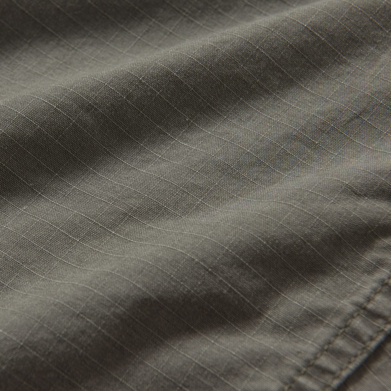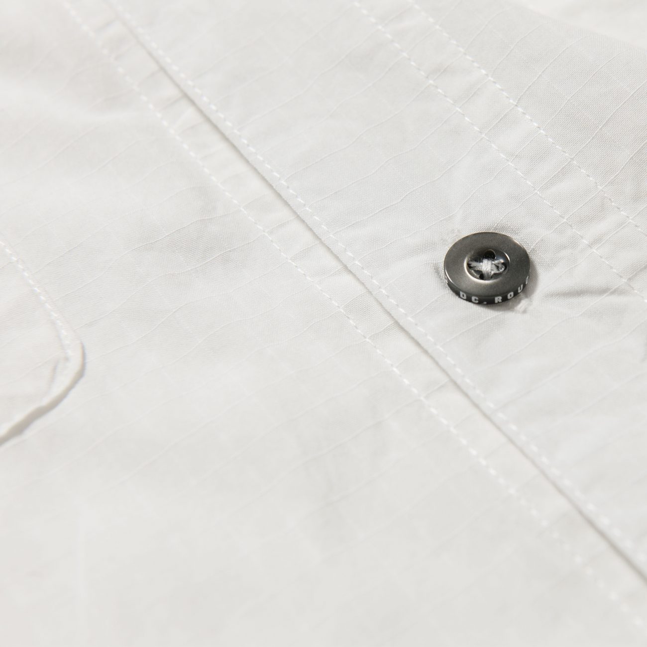 清涼感のあるリップストップ生地を使用したBOX型のJKTパターンが特徴的な開襟シャツ。 -