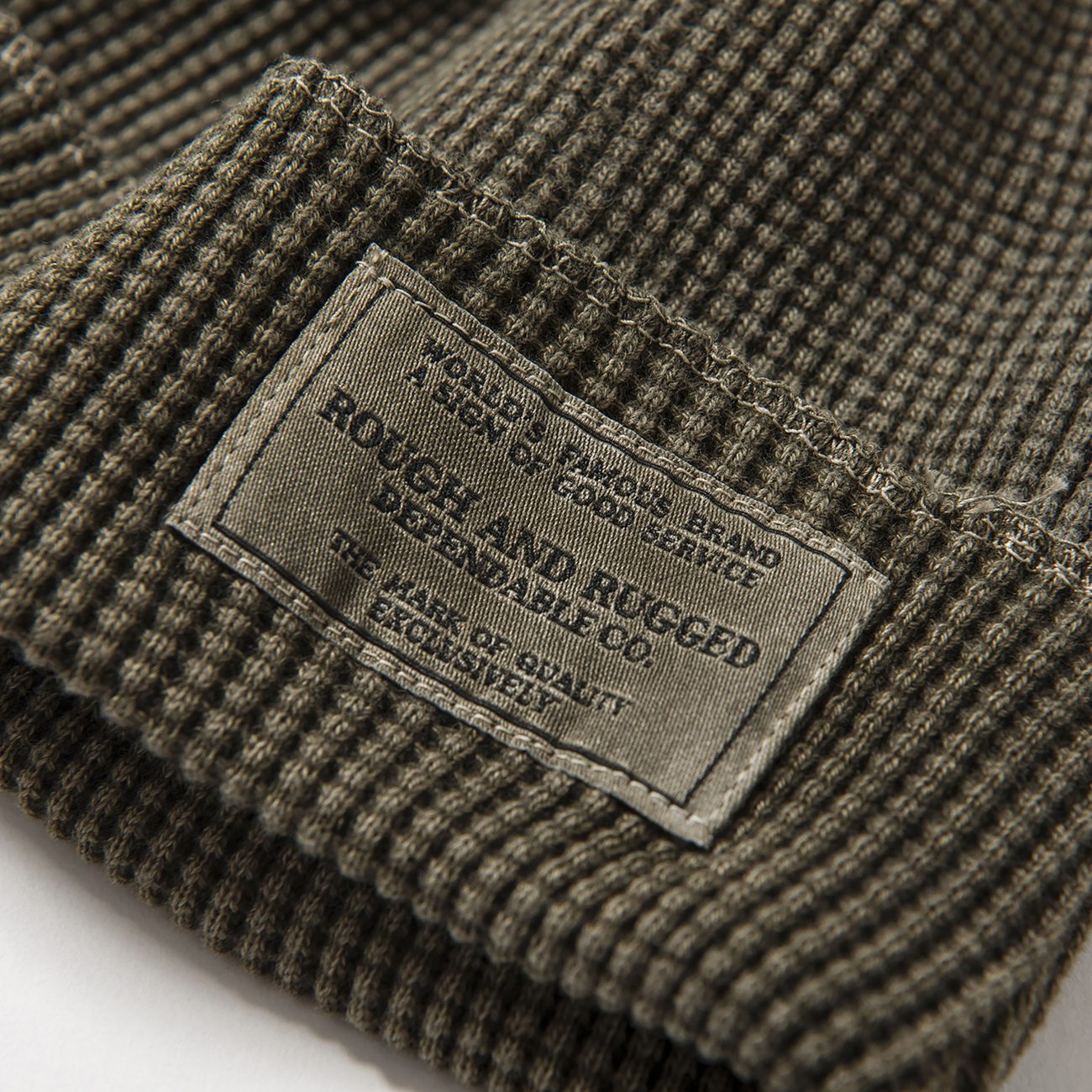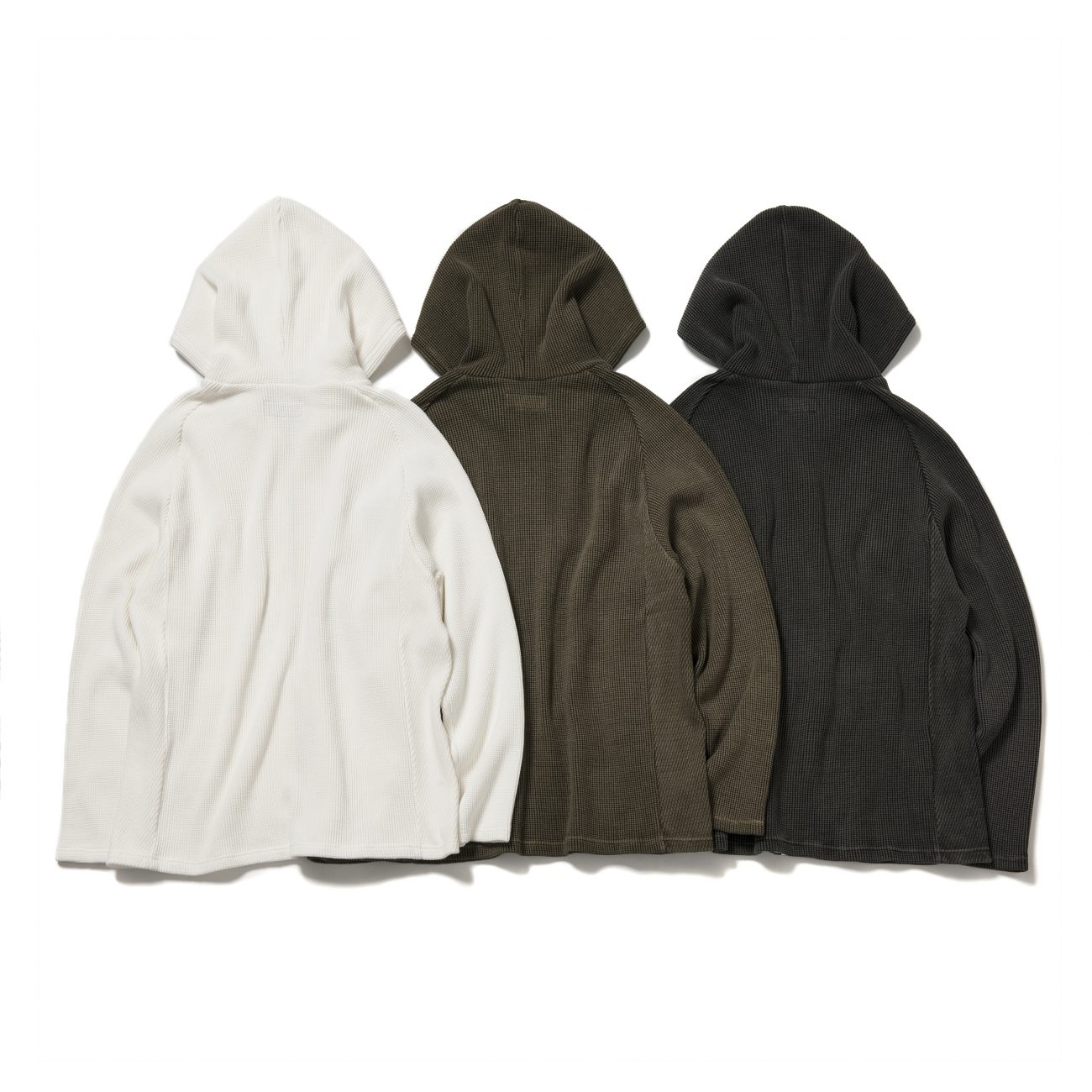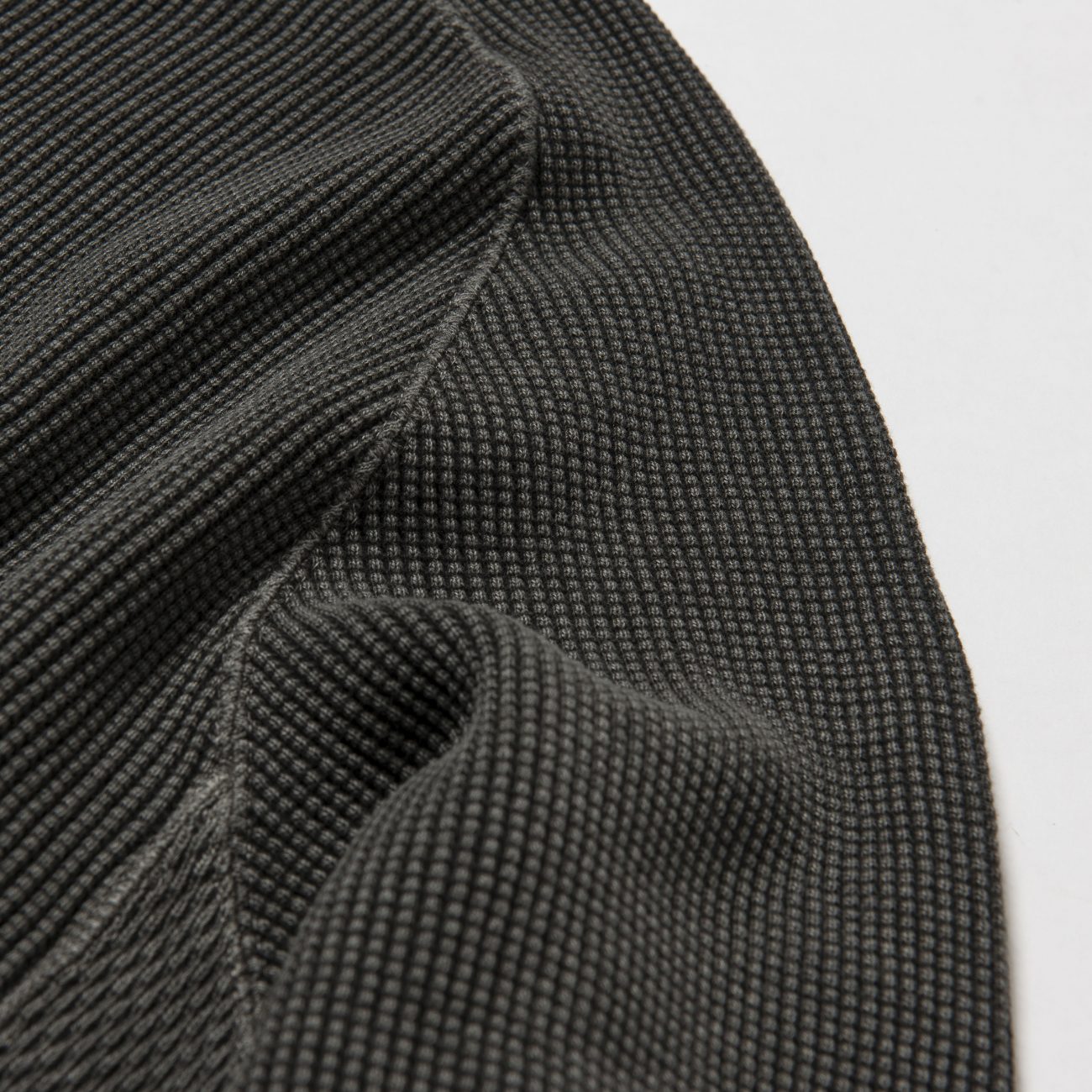 製品でピグメント染をすることによりWAFFLE独特の網目を生かし、経年変化を演出しているWAFFLE BEANIE。 -
