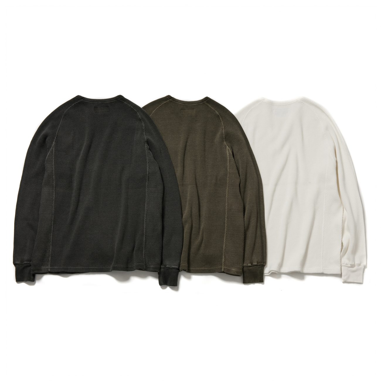 製品でピグメント染をすることによりWAFFLE独特の網目を生かし、経年変化を演出しているタンクトップ。 -