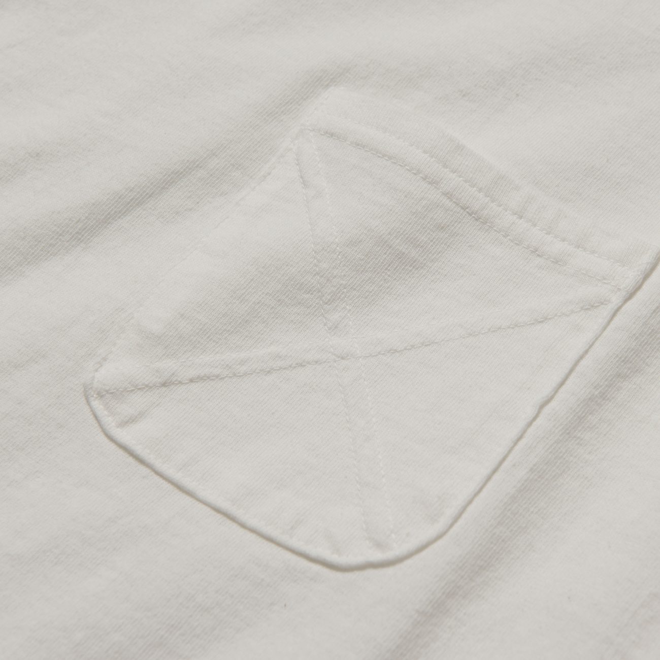 ピグメント染めを施し独特の発色を演出したクルーネックの 汗止め付きポケットTシャツ。 -