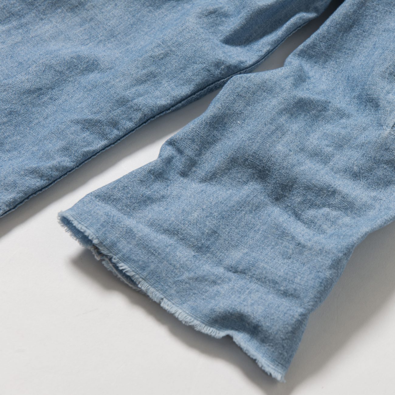 オリジナルのボタンや縫製技術の高い巻き縫いや細部のチェーンステッチ等、ディティールワークに拘ったストレートパンツ。 -