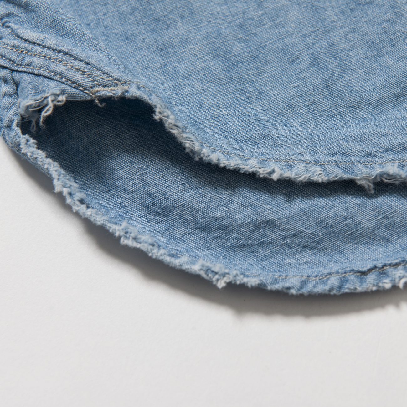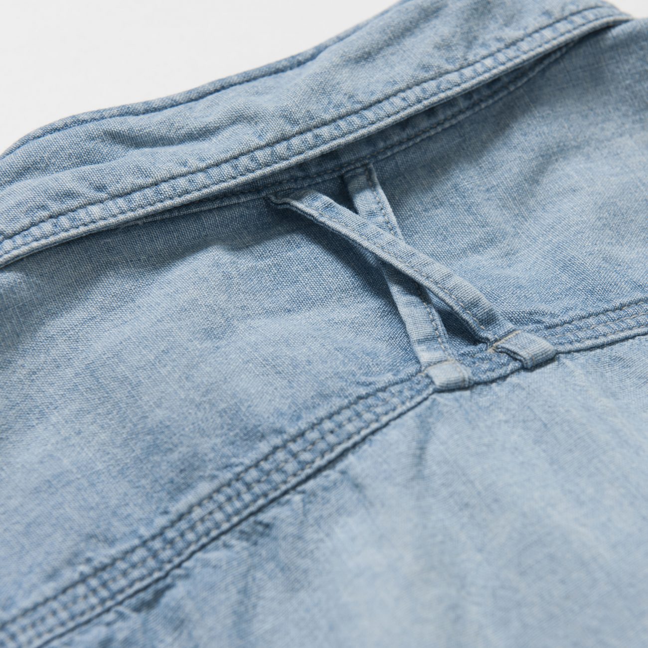 6ozのセルビッチ編みのシャンブレー生地を使用したクォータースリーブシャツ。